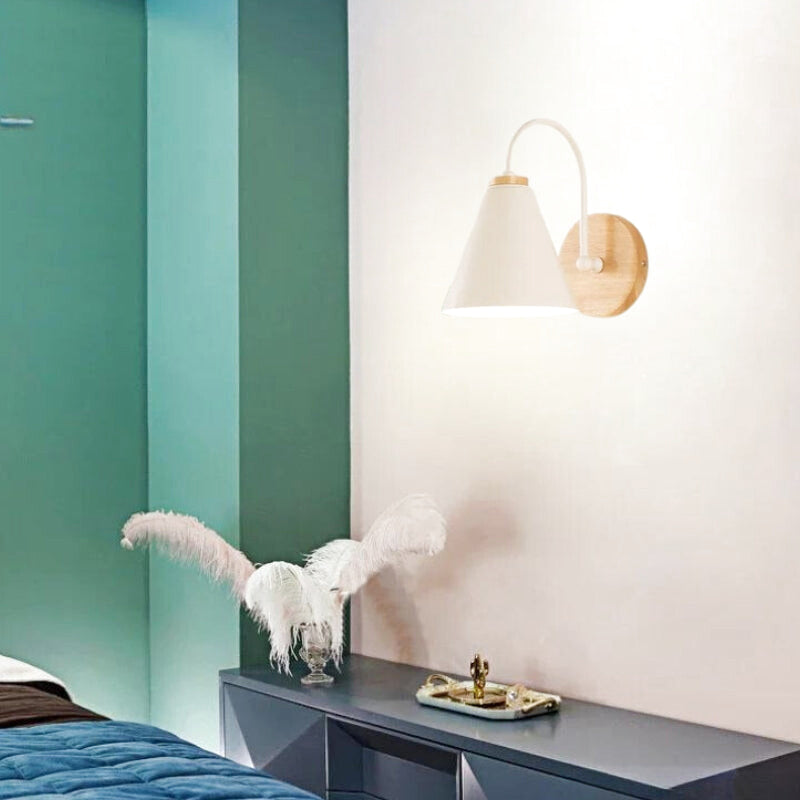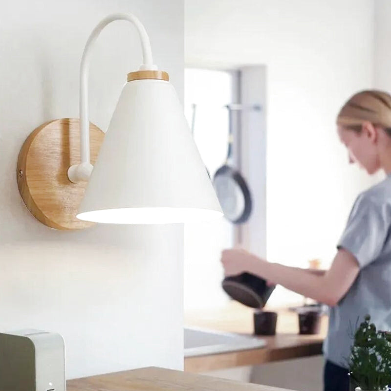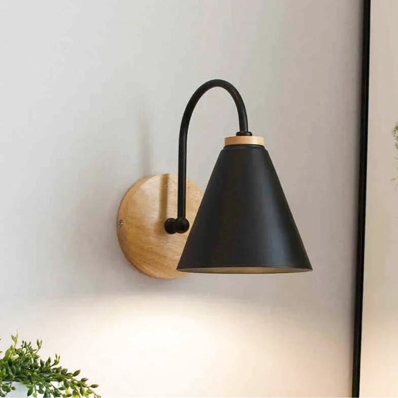 Plonge ton intérieur dans une ambiance chaleureuse et contemporaine avec cette superbe applique murale bois et métal. Son abat-jour conique en métal gris subtil associé à sa patère en bois naturel apporte une touche d'élégance à ta décoration.